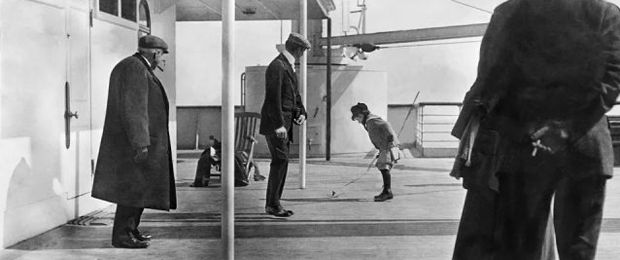 Ce plan est pratiquement une décalque d'une authentique photographie prise d'un passager de la Première classe, du nom de Frederic Spedden, accompagné de son fils de six ans, Robert Douglas.