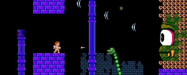 Il s'agit de Kid Icarus, le premier volet d'une autre célèbre licence initiée par Nintendo en 1986, et librement inspirée de la mythologie grecque. Dans ce jeu de plate-forme en 2D, on incarnait le dénommé Pit, un jeune ange retenu aux Enfers, doté d'un arc magique par la déesse de la Lumière Palutena, et missionné par cette dernière pour vaincre Médusa, la déesse des Ténèbres.