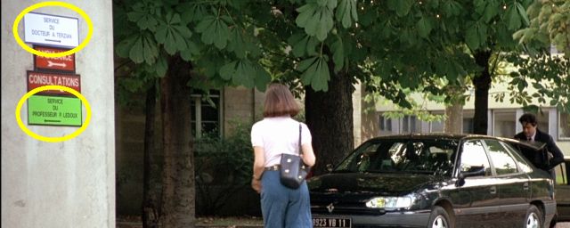 Vous pourrez constater qu'elles indiquent le chemin vers les services dirigés par "le docteur A. Terzian" et par "le professeur P. Ledoux". Une discrète petite référence aux deux producteurs du film : Alain Terzian et Patrice Ledoux.