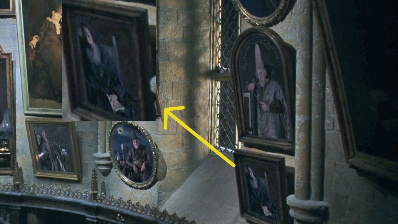 Dans la salle en spirale, la caméra s'attarde en hauteur sur une galerie de portraits - évidemment animés, nous sommes dans l'univers magique de Harry Potter - et parmi ces tableaux, l'un d'eux interpelle les fans les plus observateurs.
