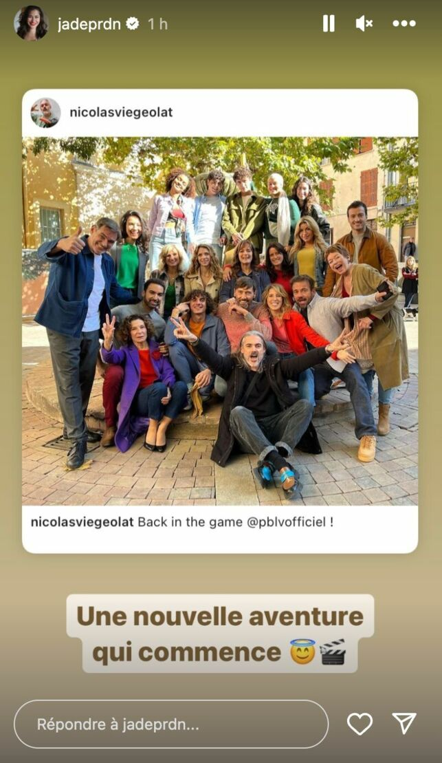Jade Pradin a repartagé une des premières photos prises lors des tournages avec une partie du casting et mise en ligne par le réalisateur et musicien Nicolas Viegeolat. "Une nouvelle aventure qui commence", a t-elle commenté en story.