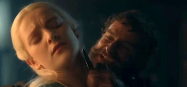 Une révélation importante de la bande-annonce de House of the Dragon est celle de Blood and Cheese, une paire d'assassins envoyés au Donjon Rouge en représailles après le meurtre de Lucerys dans le final de la saison 1. La bande-annonce montre un homme, qui semble être Cheese, tenant un couteau sous la gorge d'Helaena Targaryen.
