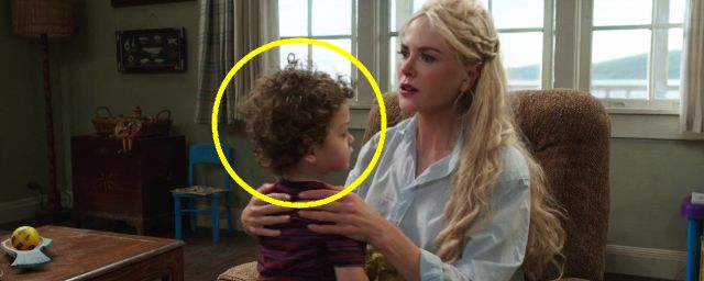 Deux secondes avant l'explosion du mur, observez le jeune acteur qui interprète le futur Aquaman, alors âgé d'environ deux ans, et installé sur les genoux de sa mère. Ainsi qu'on peut le remarquer, il arbore des cheveux plutôt courts et bouclés (voir ci-dessus).