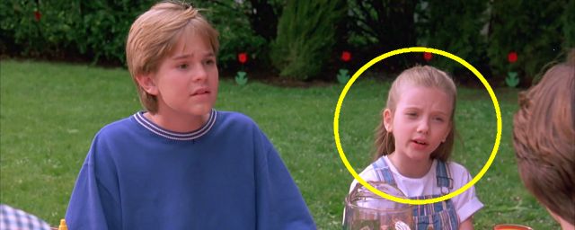 C'est vers la fin du film, alors que le jeune North (en face sur la photo) faisait la connaissance des Nelson, apparemment parfaits en tous points, que Scarlett Johansson faisait son apparition, interprétant la petite fille de la famille (voir ci-dessus).