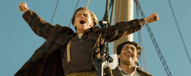 Alors que le gigantesque navire fend l'eau à une vitesse prodigieuse, le jeune Jack Dawson - qui a gagné son billet de troisième classe au poker juste avant l'appareillage - vient se placer à l'extrémité de la proue, et étend ses bras tels les ailes d'un oiseau. Porté par l'air marin qui lui donne soudain l'impression de voler, il s'écrie à pleins poumons : "Je suis..."