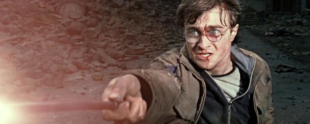 Par exemple, durant l'ultime duel entre Harry Potter et Voldemort, à l'issue de la Bataille de Poudlard, le jeune héros lance le sortilège de désarmement Expelliarmus, tandis que son ennemi tente de le tuer avec l'un des trois sortilèges interdits : Avada Kedavra. Ces éléments bien connus des lecteurs ne sont pas directement mentionnés à l'écran, où l'on voit simplement les sorciers s'envoyer des lumières rouge et verte.