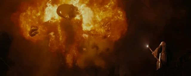 Au cours d'une scène mythique que l'on peut facilement considérer comme la plus puissante du long métrage, le Magicien lève son bâton, fait face au monstre d'ombre et de feu et clame avec autorité : "You shall not pass !"
