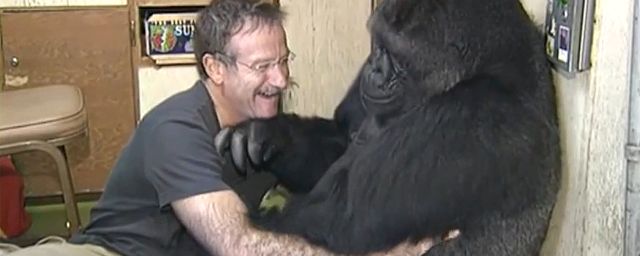 Koko avait acquis une certaine notoriété depuis 1978 grâce à sa maîtrise d’une forme de langue des signes américaine (ASL) adaptée aux gorilles et pouvait ainsi communiquer avec les humains, ce que peu de singes ont été capable de faire avant elle. Robin Williams a ainsi été invité à la rencontrer et à converser avec elle en 2001. Et on peut dire qu’ils avaient une alchimie parfaite !