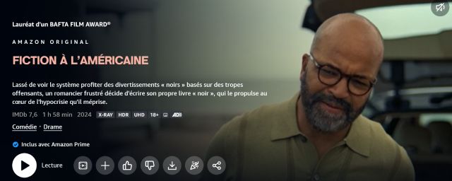 Son arrivée sur Prime Video en France n'a rien d'étonnant puisqu'Amazon MGM Studios gérait sa sortie aux États-Unis et aucune sortie en salle n'avait été annoncée dans l'Hexagone. Il était donc logique qu'American Fiction atterrisse dans le catalogue de Prime Video, mais avec une date officielle et une annonce, cela aurait été mieux.