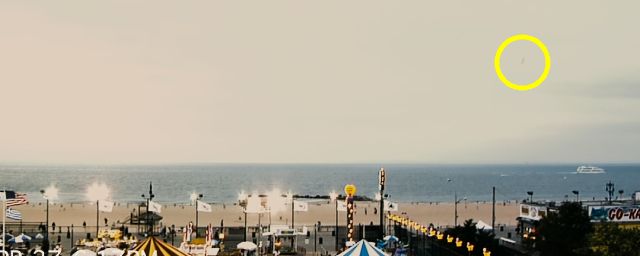 C'est à cet instant du film, à 1 heure, 13 minutes et 21 secondes très précisément, qu'il vous faudra appuyer sur le bouton "pause" de votre télécommande et observer attentivement le ciel en plissant bien les yeux. Alors que les deux protagonistes filment la baie de Manhattan du haut d'une grande roue, regardez bien en haut à droite de votre écran.