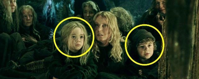 Avez-vous par exemple prêté attention à ces deux enfants, blottis auprès de leur mère dans les Cavernes Etincelantes, alors que la Bataille du Gouffre de Helm est sur le point de débuter, dans la dernière partie des Deux tours ?
