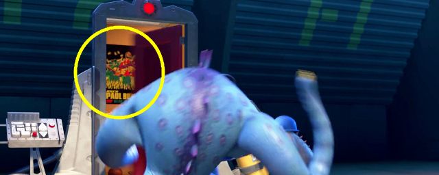 Dans cette séquence, l'un des monstres dont le métier consiste à recueillir les cris des enfants ressort précipitamment de la chambre dans laquelle il était entré. Terrorisé, il explique qu'il a failli entrer en contact avec l'enfant en question, ce qui est considéré comme très dangereux pour tous les habitants de Monstropolis.