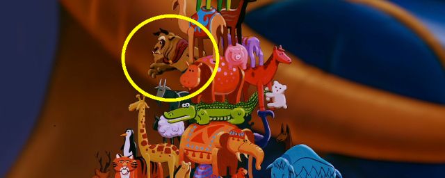 Mais à 47 minutes et 18 secondes du long métrage, dans la séquence où l'on peut voit le Sultan d'Agrabah s'amuser avec ses jouets (juste avant que n'arrive le Prince Ali) se trouve un autre caméo Disney que vous n'aviez peut-être pas remarqué.