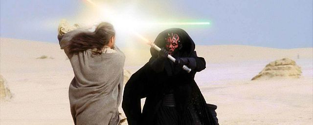 Dans un sens, Dark Maul et Dark Sidious étaient tous deux la “menace fantôme” du premier film, le fantôme du passé qui était revenu hanter le présent. L’apparence de Dark Maul a été délibérément conçu pour avoir l’air démoniaque, et ce duel prolongé aurait fait de lui une menace encore plus importante.