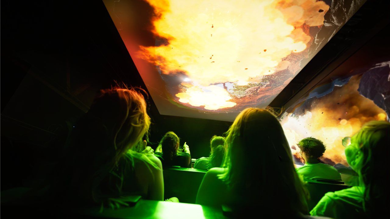 L’idée ? Proposer le même parcours, mais avec des sensations un peu différentes. Le casque VR nous embarque sur les montagnes russes tandis que le plateau bouge dans tous les sens pour accompagner le mouvement du wagon !