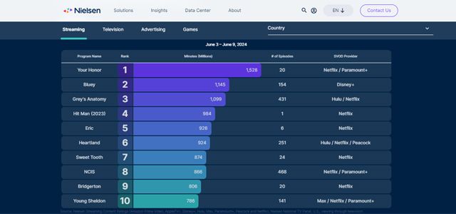 La première semaine de juin a été chargée en actualités streaming, avec un afflux de nouveautés qui ont bouleversé les classements d'audience de Nielsen outre-Atlantique, l'institut de mesure d’audiences équivalent de Médiamétrie chez nous.
