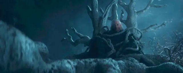 Dans les visions de Daemon, un homme arborant les cheveux blancs caractéristiques du clan Targaryen est aperçu un bref instant. Sur sa joue gauche, une tache de naissance prenant la forme d’un corbeau est également visible. Un plan plus large nous permet ensuite d’apercevoir ce même personnage prisonnier des racines d’un arbre.