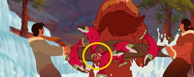 Le Monde de Nemo (cinquième long métrage des studios Pixar) étant sorti au cinéma quelques mois avant Frère des ours, le clin d'oeil paraît plutôt logique, même si en termes de cohérence historique et géographique, on peine quand même à comprendre comment un poisson né pendant les années 2000 dans la Grande Barrière de Corail a pu se retrouver dans une rivière de l'Amérique préhistorique.