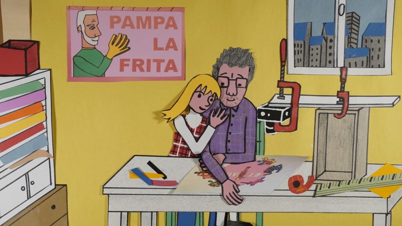 Dans ce film, visible en salles depuis le 2 octobre, nous avons donc droit à plusieurs histoires qui reposent sur un principe simple : tout commence par une vidéo de Maya, qui donne un titre d'histoire à son père éloigné d'elle, et celui-ci se charge du reste. A grands renforts de collages, trucages et autres jeux de mots, qui transforment le mot "hamac" en acronyme de Homme Allongé Mais Aussi Confortable.