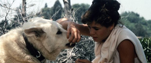 Adapté d'un roman de Romain Gary, datant de 1970 et intitulé Chien Blanc, le récit est basé sur une histoire vécue par l'auteur. Alors qu'elle vivait à Hollywood avec son mari, l'écrivain Romain Gary, l'actrice Jean Seberg, engagée dans la lutte pour les droits civiques, ramena à son domicile un chien blanc trouvé dans la rue. Si de prime abord l'animal lui semblait docile, au fil du temps, il s'est montré agressif envers les Noirs. Le couple a donc entrepris de rééduquer le chien.