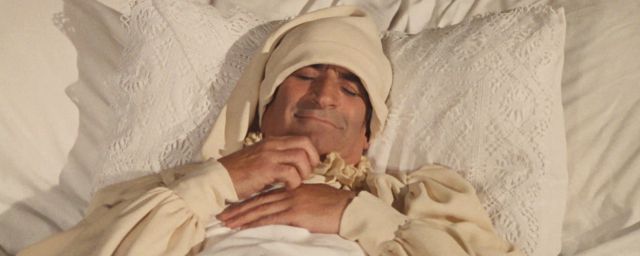 La séquence se déroule au début du film. Pingre, avare et cupide, Don Salluste a déjà eu l'occasion de démontrer à plusieurs reprises son amour immodéré de l'argent. Il dort profondément dans son lit à baldaquin, et son valet entreprend alors la délicate tâche de le réveiller.