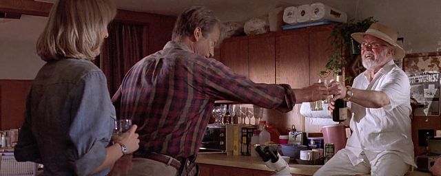 Pourtant, on peut le comprendre dès le début du film : John Hammond n’a pas la moindre idée de comment gérer son propre parc. De la simple idée de sous-payer ses employés à ne pas y mettre plus de sécurité, il devient (presque) le véritable méchant du film. Et pour illustrer ce point et montrer qu’il ne sait pas ce qu’il fait, Spielberg a décidé d’être extrêmement subtil : dans une scène où il sert du champagne à Ellie (Laura Dern) et Grant (Sam Neill), et même si des coupes de champagne sont parfaitement visibles dans la cuisine et à sa portée, le propriétaire du parc décide de servir l’alcool en question dans des verres à whisky !