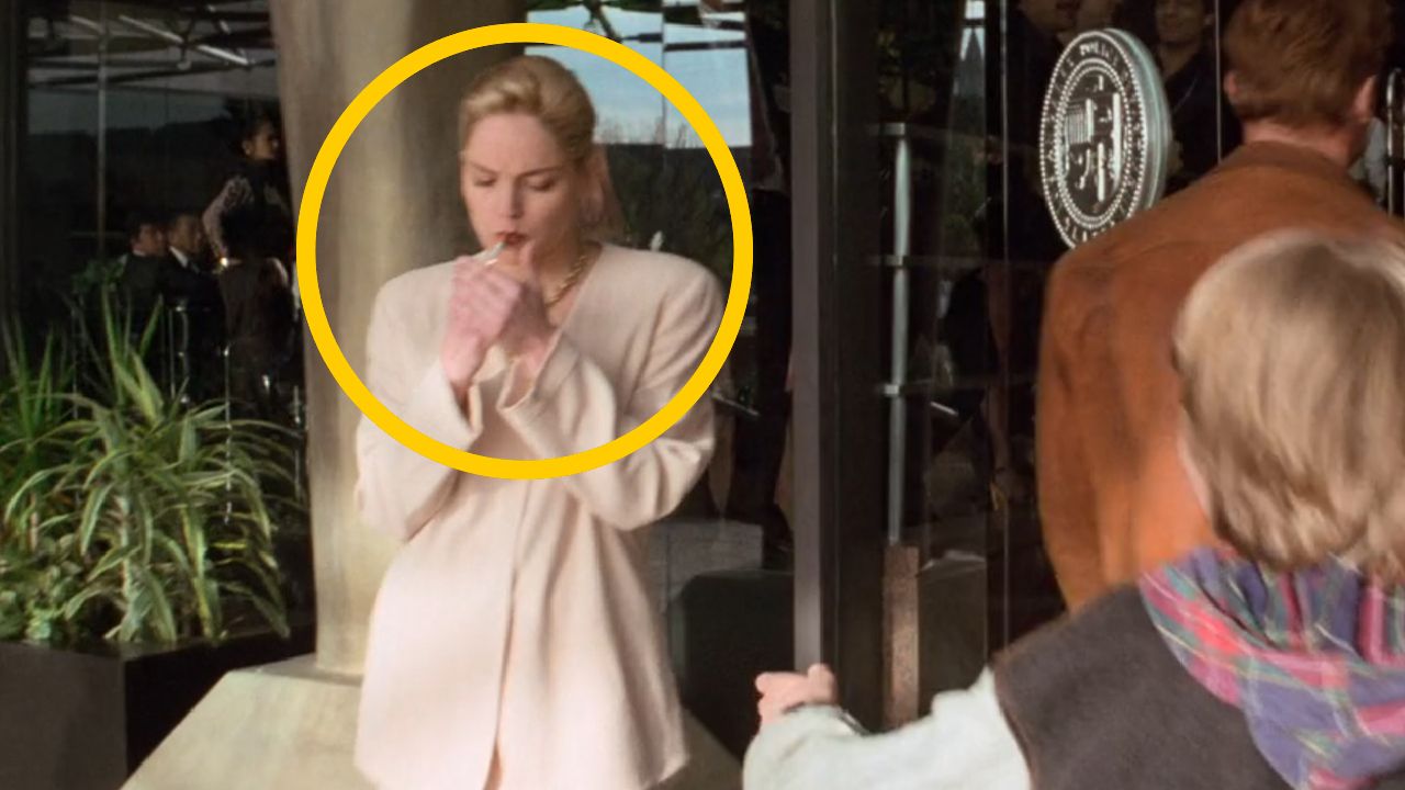 Par exemple, si vous ouvrez bien les yeux à 32 minutes et 27 secondes, vous allez apercevoir deux personnages très familiers ! Tout d'abord, c'est Catherine Tramell, la tueuse au pic à glace de Basic Instinct, qui fait son apparition devant le commissariat où se rendent Danny et Jack Slater. Interprétée par Sharon Stone, elle s'allume une cigarette avant de reprendre sa route.