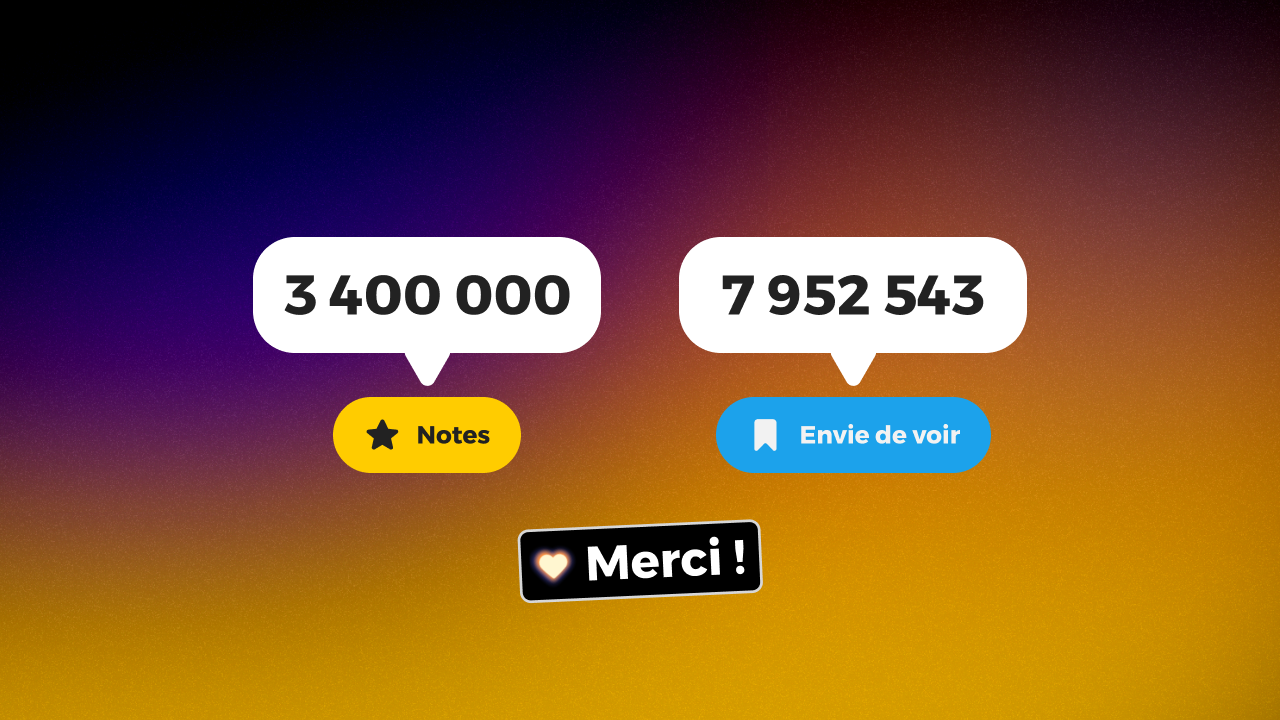 Le Comte de Monte-Cristo, House of the Dragon, Arcane, Un p'tit truc en plus... "Il faut tout voir, c'est un devoir !", c'est votre devise. Et les quelque 3 400 000 notes et les 7 952 543 "envie de voir" que nos internautes ont postés en 2024 sur AlloCiné nous incitent à penser que cette devise, vous êtes nombreux à la partager. Et on vous en remercie !
