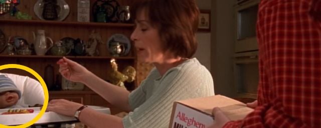 A 4 minutes et 23 secondes de l'épisode très exactement, dans une séquence où Loïs discute avec son fils tout en donnant à manger à Jamie, observez le bébé avec attention. Sur les premiers plans de la scène, il est tout à fait normal, certes. Mais sur celui-ci, en vous focalisant sur la bordure gauche de votre écran, vous pourrez constater qu'il a été remplacé par une poupée... et que cela n'est pas discret du tout.