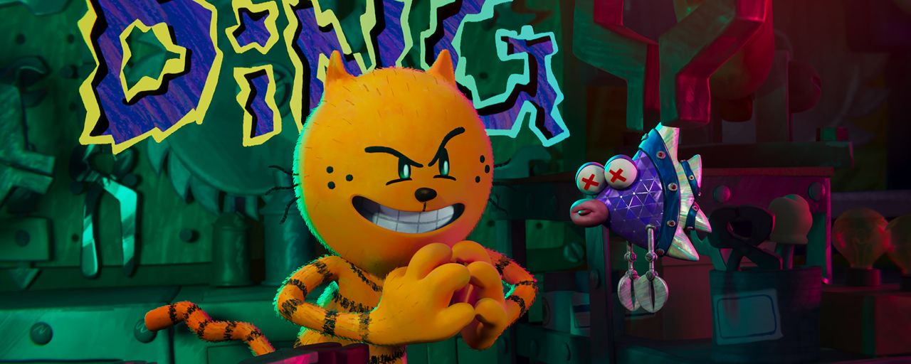 Visuellement, l’équipe du film a tenu à respecter l’esthétique si particulière des BD. L’un des points forts de l’esthétique de Dog Man réside dans son aspect fait à la main. Contrairement à de nombreux films d’animation aux textures ultra-réalistes, Dog Man adopte une approche plus simple, avec des traits épais, des lignes légèrement tremblantes et des formes arrondies, qui donne l’impression que le film a été dessiné par un enfant, ce qui est totalement en phase avec l’esprit des livres. Mention spéciale aux immeubles qui prennent vie et s’affrontent à la manière de Godzilla et King Kong.