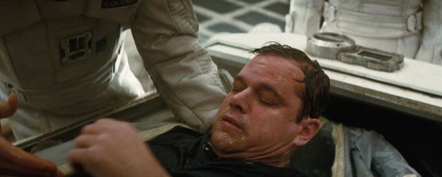 Ils découvrent le professeur Mann endormi dans un caisson d'hibernation, qu'ils désactivent pour s'entretenir avec lui. Mais au moment où Matthew McConaughey ouvre la housse dans laquelle est étendu l'astronaute, le visage qui en émerge est celui de... Matt Damon.