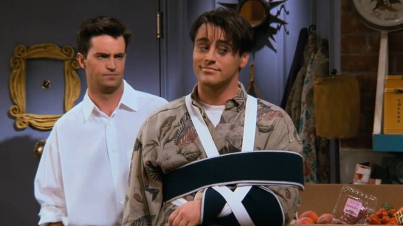 Ainsi, ce qui devait être l’épisode le plus simple et le moins cher à tourner est devenu le plus long et le plus compliqué à mettre en boîte. Afin de justifier le fait que Matt LeBlanc avait le bras en écharpe dans l’épisode suivant, les scénaristes ont imaginé que Joey tombait en sautant sur son lit.