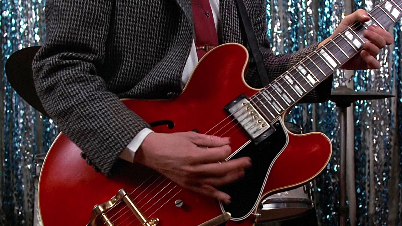 "Le département artistique du film a simplement choisi la ES-345 parce qu’elle évoquait la célèbre guitare rouge avec laquelle Chuck Berry faisait son légendaire 'duckwalk' sur les scènes du monde entier", a précisé Michael J. Fox.