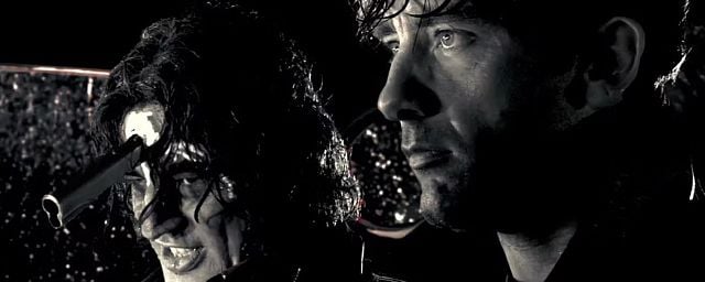 Cette scène se déroule dans le deuxième tome adapté pour le film et met en scène Dwight McCarthy (Clive Owen) discutant avec le cadavre de Jackie Boy (Benicio del Toro), un policier corrompu abattu par un gang de prostituées. L’enjeu : faire disparaître le corps avant que la police n’intervienne.