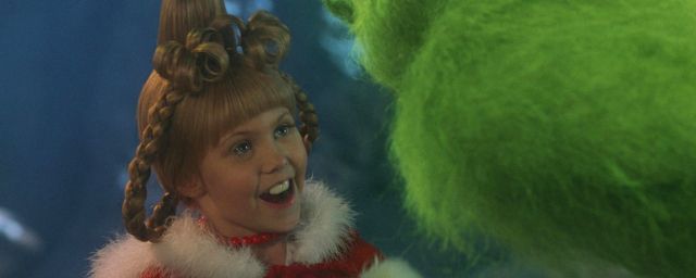 La comédienne a raconté que malgré son très jeune âge à l'époque, et en dépit du costume particulièrement réussi de Jim Carrey (près de trois heures de maquillage quotidiennes étaient nécessaires pour lui donner l'apparence du Grinch), elle était tout à fait consciente de jouer la comédie face à un véritable homme adulte, mais elle n'avait pourtant aucune idée de sa véritable apparence.