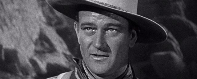Au cours du récit, Ford prend son temps pour installer son héros : Ringo Kid, incarné par John Wayne, n’apparaît qu’à la 18ᵉ minute. Mais quelle entrée ! Un zoom progressif, partant d’un plan américain jusqu’au gros plan du visage, dévoile Ringo Kid ordonnant à la diligence de s’arrêter, tout en effectuant un moulinet avec sa Winchester. Sans aucun accompagnement musical retentissant, ce simple mouvement de caméra a suffi à créer une icône.