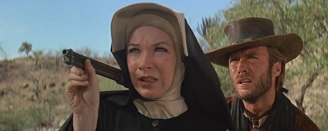 Si le film bénéficie d’une musique composée par Ennio Morricone, son véritable atout réside dans l’alchimie entre ses deux protagonistes. D’un côté, une nonne énigmatique dissimulant ses véritables intentions ; de l’autre, un aventurier désabusé, parfaitement à l’aise dans l’univers rude de l’Ouest. Certes, l’humour ne fait pas toujours mouche et les dialogues sont particulièrement nombreux pour un western, mais la vitalité et le charisme de Shirley MacLaine insufflent au film une énergie singulière.