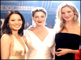 18h00. Le trio de choc et de charme pénètre dans un cossu petit salon. D'emblée, les trois drôles de dames manifestent une bonne humeur contagieuse. Emmenés par une Drew Barrymore vêtue d'une chemise blanche et d'une cravate, nos trois anges font preuve d'une complicité étonnante, main dans la main trente minutes durant. Leur entente semble sincère, presque symbiotique : Cameron Diaz fait du tricot avec les cheveux de Lucy Liu, glousse joyeusement sur les bons mots de ses consoeurs, et la conférence prend vite des allures de cour de récréation, terrain de jeu privilégié de trois chipies pas comme les autres...