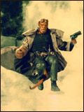 Ils sont tellement sérieux, droits et bons, voire presque ennuyeux ! À côté de ça, Hellboy est un lascar qui fume le cigare, boit de la bière, mange des pizzas. C'est son crochet droit qui fait de lui un super héros, car sa main droite est faite d'une pierre d'une dureté inimaginable. Il ne vole pas ; il ne prend pas la pause classique pour dire : "Bonjour, je m'appelle Hellboy !" C'est quelqu'un de tordu, qui possède cependant une façon extraordinaire d'affronter et de supporter les épreuves de la vie, ainsi qu'un fantastique sens de l'humour. Il s'amuse comme il peut, que cela ne plaise aux autres personnes ou non. Ça lui est égal. C'est le genre de type avec qui l'on aimerait bien boire une bière. Ce qui le différencie principalement des autres super-héros est clairement cet humour : il est comique dans des situations où les autres super héros ne le sont jamais. Son expression préférée, qui sort directement de la plume de Mignola, est : "Et, merde !" ("Aw crap !"). C'est en principe ce qu'il dit lorsqu'il se retrouve face à un monstre gigantesque qu'il va devoir tuer ! Tout autre super héros normal serait déjà en train de voler autour du démon ou en train de sortir son lasso tandis que lui se dira : "Bon, courage. Respire, tu vas en avoir besoin..." Il ressemble quelque peu à John Wayne, sauf qu'en plus, il est baraqué, rouge et mignon tout plein ! (rires)
