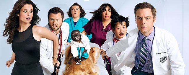 La clinique vétérinaire d'Animal Practice ferme ses portes ! La chaîne américaine NBC a décidé d'annuler sa comédie portée par Justin Kirk et Joanna Garcia. Suivie par une moyenne de 6 millions de téléspectateurs - un score relativement honorable mais en réalité totalement faussé par l'audience du 1er épisode suivi par plus de 12 millions de téléspectateurs en pleins Jeux Olympiques - Animal Practice se situait en réalité sous les 4 millions de fans réguliers, avec un taux sur les 18-49 ans famélique (entre 1.1 et 1.3). A ce faible rendement s'ajoutait une critique globalement (très) négative... Un cocktail généralement fatal à toute série, même sur NBC, qui vit en outre un début de saison prometteur après des années de disette.