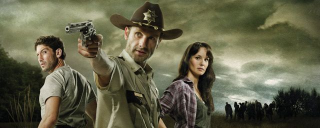 De gauche à droite : Shane (Jon Bernthal), Rick (Andrew Lincoln) et Lorie (Sarah Wayne Callies)