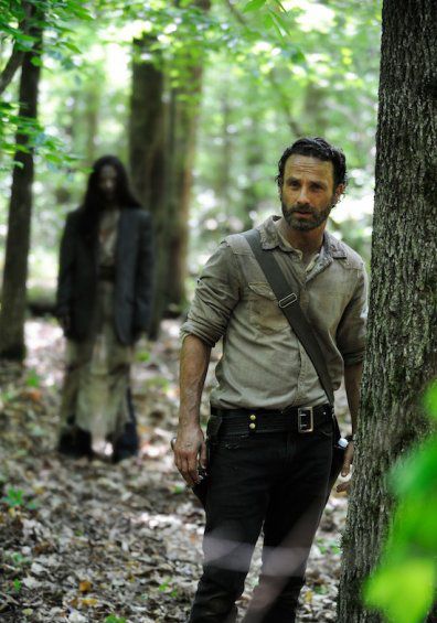 Andrew Lincoln dans les bois entourant la prison de Woodbury, une zombie quelques pas derrière... La chaîne américaine AMC a dévoilé la première photo du premier épisode de la saison 4. Un cliché qui ne révèle pas grand chose et qui est loin de constituer une image choc, mais à plus de 6 mois de la diffusion de la saison 4 de The Walking Dead, les fans ne doivent pas faire la fine bouche...