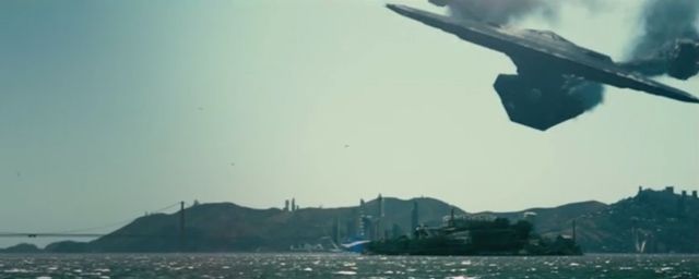 Est-ce qu'Abrams a joué du clin d'oeil et de l'esprit sale gosse ? Après tout, la baie de San Francisco est grande... et un vaisseau spatial a toute la place qu'il souhaite pour s'écraser un peu plus loin ou voler un peu plus haut.
