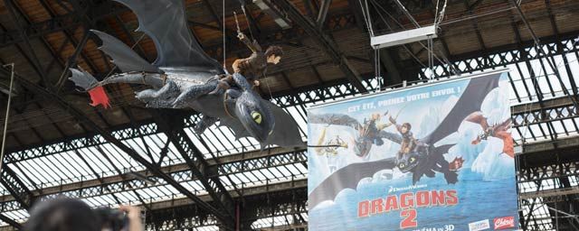 Dragons 2 sort sur nos écrans le 2 juillet prochain, à cette occasion la 20th Century Fox a envoyé 3 dragons rôder dans le Hall 1 de la Gare de Lyon. Du 5 au 11 juin les voyageurs pourront ainsi voir les personnages du film, chevaucher leurs dragons "grandeur nature", au dessus de leur tête.