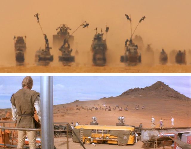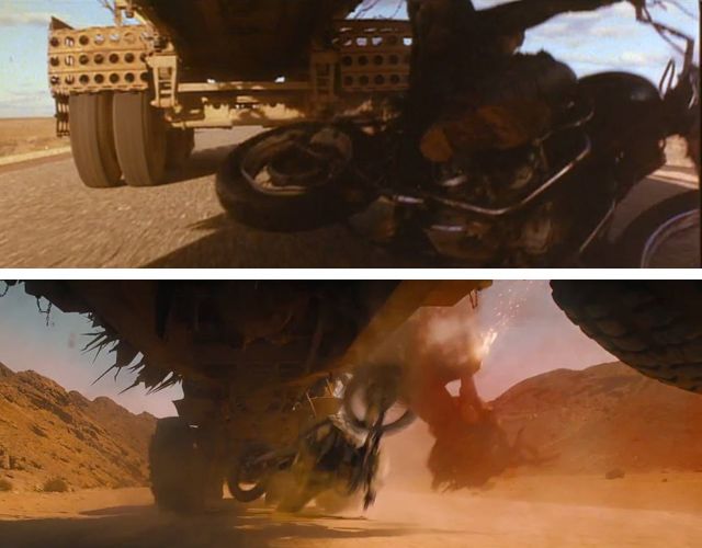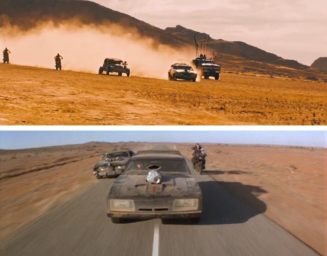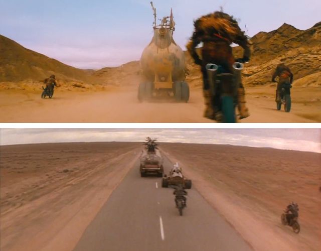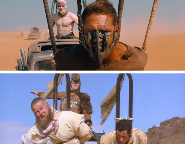 Et si Mel Gibson laisse son uniforme tout-cuir, son Interceptor et son canon scié à Tom Hardy, l'esprit du cultissime Mad Max 2 est bien présent dans les deux minutes qui ont été offertes aux fans dans le cadre du Comic-Con 2014. A tel point que de nombreux plans font furieusement écho à l'aventure la plus marquante du Guerrier de la Route. La preuve en images avec ce petit comparatif (en haut, la version 2015, en bas la version 1982)... en attendant mai prochain pour découvrir si Fury Road est bien à la hauteur du Défi.
