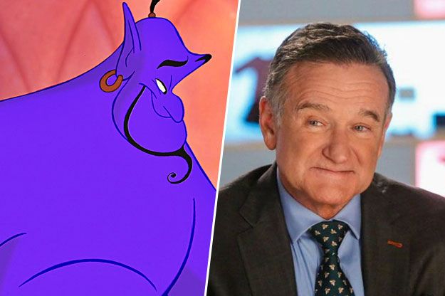 Robin Williams, qui doublait le Génie en version originale, s’est tellement pris au jeu qu’il a improvisé pendant plus de 16 heures. L'attendrissant personnage bleu a également hérité de certaines expressions faciales du comédien.