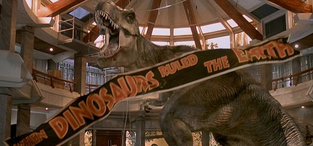 Chez Spielberg, certains personnages (Hammond, Grant, Satler, Malcolm, Lex et Tim) parviennent aussi à s’enfuir avec un hélicoptère du parc. L’île est cependant laissée intacte, et les dinosaures continuent à s’y développer.