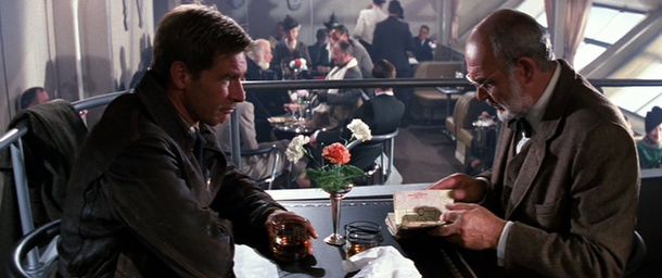 Du moins lors de sa scène de dialogue avec Harrison Ford dans le zeppelin. Censée se dérouler en hiver (comme le confirme les fourrures des figurants), la séquence fut en réalité tournée en plein été. Afin de ne pas transpirer, Sean Connery décida donc d'ôter son pantalon, la scène se déroulant à une table de restaurant, et le cadre ne dévoilant que le haut de son corps. Harrison Ford fit de même... Tel père, tel fils !