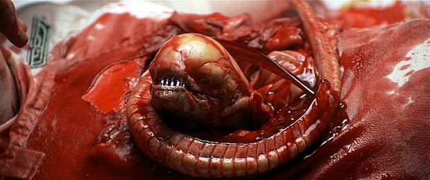 Pour le moment où l'alien jaillit du corps de Kane, explosant sa poitrine... Son apparence (indescriptible!), son cri de bébé/cochon/vipère et tout le sang qui jaillit ne vous aideront pas à appréhender sereinement la naissance du petit être encore étranger, qui grossit plus ou moins sagement dans votre ventre arrondi.