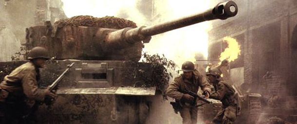 On cite plus souvent -et à raison- la désormais fameuse séquence du débarquement à Omaha Beach du chef-d'oeuvre de Steven Spielberg. Mais la bataille finale est aussi terrifiante en intensité et en brutalité. Dans cette séquence, les G.I's sont notamment confrontés à un monstre d'acier de 56 tonnes : le célèbre char Tigre allemand, doté d'un canon de 88 mm. On distingue également dans cette séquence un canon Flak 38 mobile tirant des obus de 20 mm (celle qui taille littéralement en pièces les G.I's), ainsi qu'un chasseur de chars allemand de type Marder.